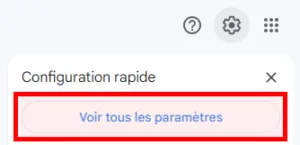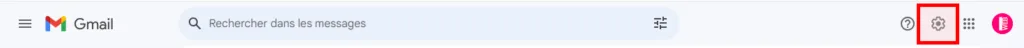 - Pour accéder aux paramètres dans Gmail, il vous suffit de cliquer sur l’icône en forme de rouage située dans le coin supérieur droit de la fenêtre.