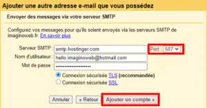 – Mot de passe : le mot de passe du mail entré dans le champ nom d’utilisateur