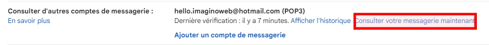 Toutefois il est possible de forcer cette synchronisation en cliquant sur Consulter votre messagerie maintenant (le lien est disponible au même endroit qu’à l’étape 4 de ce tutoriel)