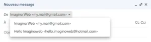 - Vous pouvez maintenant envoyer un mail avec un autre compte de messagerie autre que Gmail sur Gmail. Comme le montre la capture d’écran ci-dessous, lorsque vous rédigez un mail vous pouvez choisir l’expéditeur. Si vous vous connectez sur l’application mobile Gmail, il n’y aura pas besoin de refaire la manipulation.